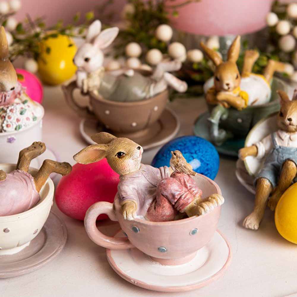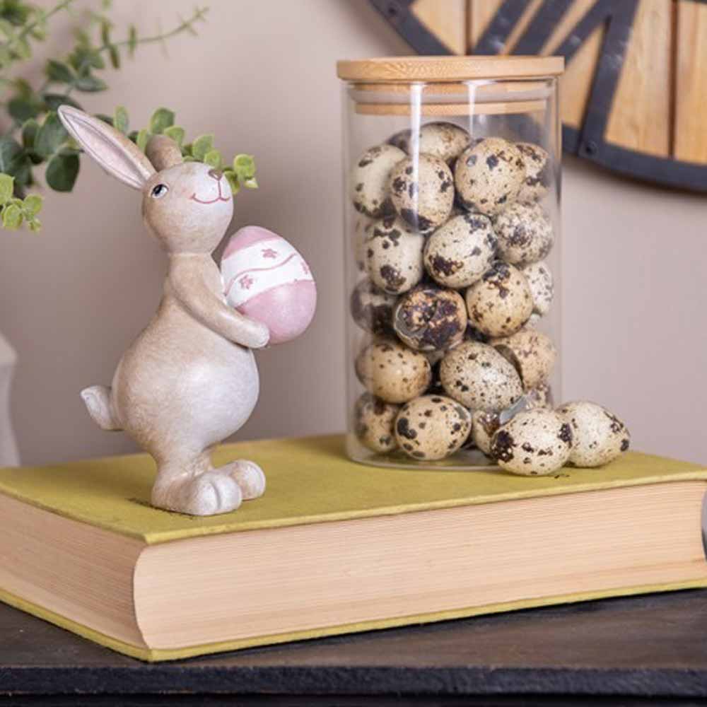 Dekofiguren: Platziere Osterfiguren als Aufsteller wirkungsvoll in Regalen oder auf Beistelltischen. Diese können aus verschiedenen Materialien wie Holz, Keramik oder Metall sein und dienen als verspieltes Element in Deiner Innenraumgestaltung.