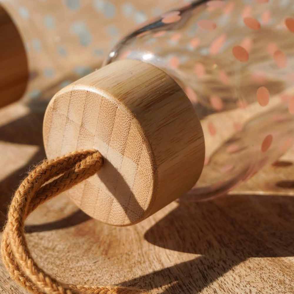 Der 100 % auslaufsichere Bambusdeckel gewährleistet, dass dein Getränk sicher in der Flasche bleibt, ohne unangenehme Überraschungen in deiner Tasche zu verursachen. Das Fassungsvermögen von 550 ml bietet ausreichend Platz für eine erfrischende Menge an Flüssigkeit.