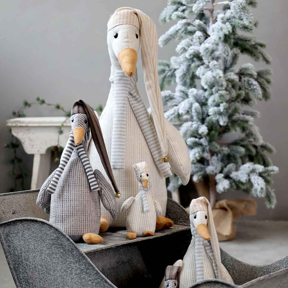 Gustav Gans“ in Creme von Chic Antique bringt eine niedliche Portion skandinavischen Charme in Dein Zuhause. Mit seinen weichen Materialien und den liebevollen Details wie Schlafmütze und Schal zaubert er Gemütlichkeit und ein Lächeln auf jedes Gesicht.
