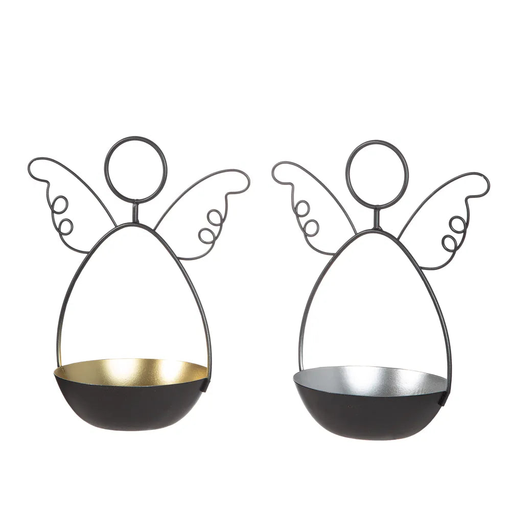 Diese beiden Engel halten deine Teelichter wie in einer schützenden Umarmung und lassen Gold- und Silberglanz erstrahlen. Der Mix aus schlichtem Draht und glamourösen Schalen sorgt für besondere Lichtspiele und ein Gefühl von Geborgenheit. Die harmonische Mischung aus Materialien und Farben verleiht jedem Raum eine behagliche Note. Durch die liebevolle Verarbeitung und das skandinavische Design wirkt das Stück sowohl modern als auch zeitlos. Es lädt dich zum Träumen ein und verbreitet im Nu nordische Leichtigkeit – lass dich verzaubern! ♥