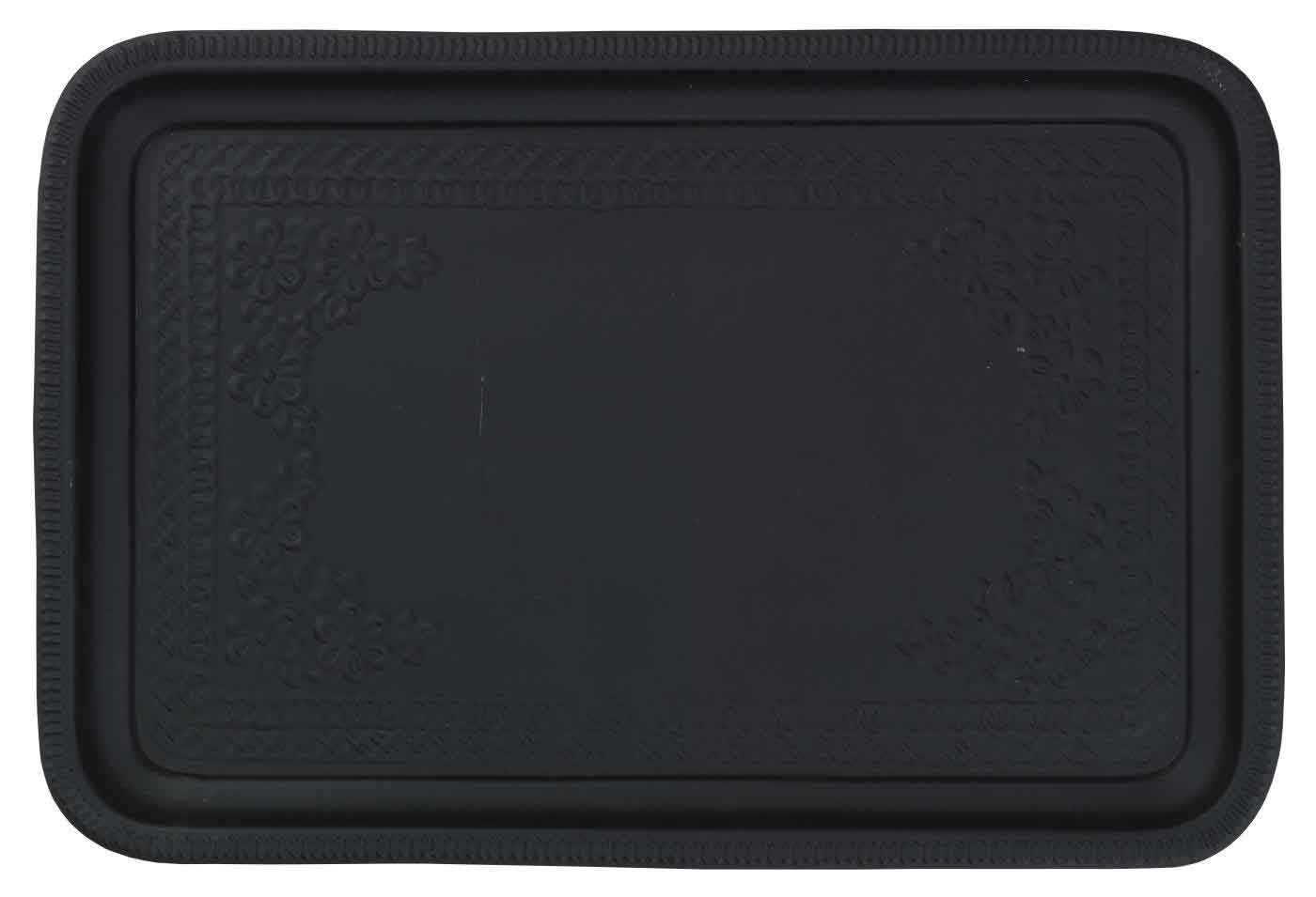 Der Clou liegt im Detail: Die erhöhte Kante ist mit einer feinen, ornamentalen Prägung versehen, die dem Tablett einen Hauch Vintage-Flair verleiht. Gleichzeitig sorgt sie dafür, dass nichts so schnell herunterrutscht. Das widerstandsfähige Material hält einiges aus und lässt sich leicht reinigen – so hast du lange Freude daran. Ob als stylische Servierfläche für Tapas, als Unterlage für deine Lieblingskerzen oder als Sammelplatz für Schlüssel und Schmuck im Flur – dieses Tablett ist ein echter Allrounder.