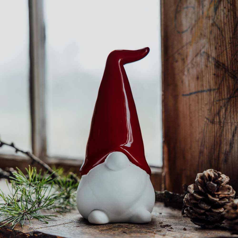 Der Samuel Wichtel besticht durch seine glänzende rote Mütze und den kontrastierenden matten Körper, die eine besondere haptische Erfahrung bieten. Handgefertigt und mit Liebe zum Detail gestaltet, macht dieser Wichtel jede Weihnachtsdekoration einzigartig. Kleine Unregelmäßigkeiten in der Keramik sind charakteristisch und machen jedes Stück zu einem Unikat.