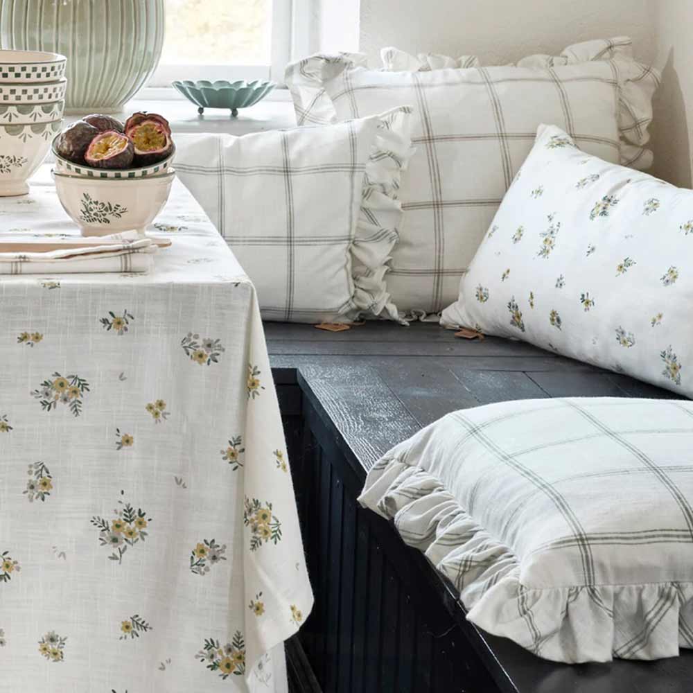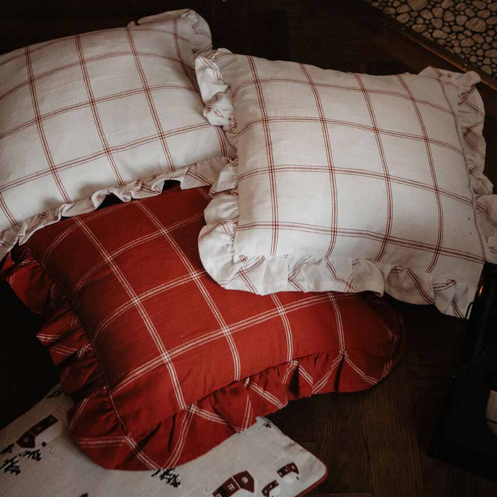 - Skandinavisches Design: Das klassische karierte Muster, kombiniert mit einer dekorativen Rüsche an den Seiten, spiegelt die skandinavische Ästhetik wider und bringt nordischen Charme in dein Zuhause.