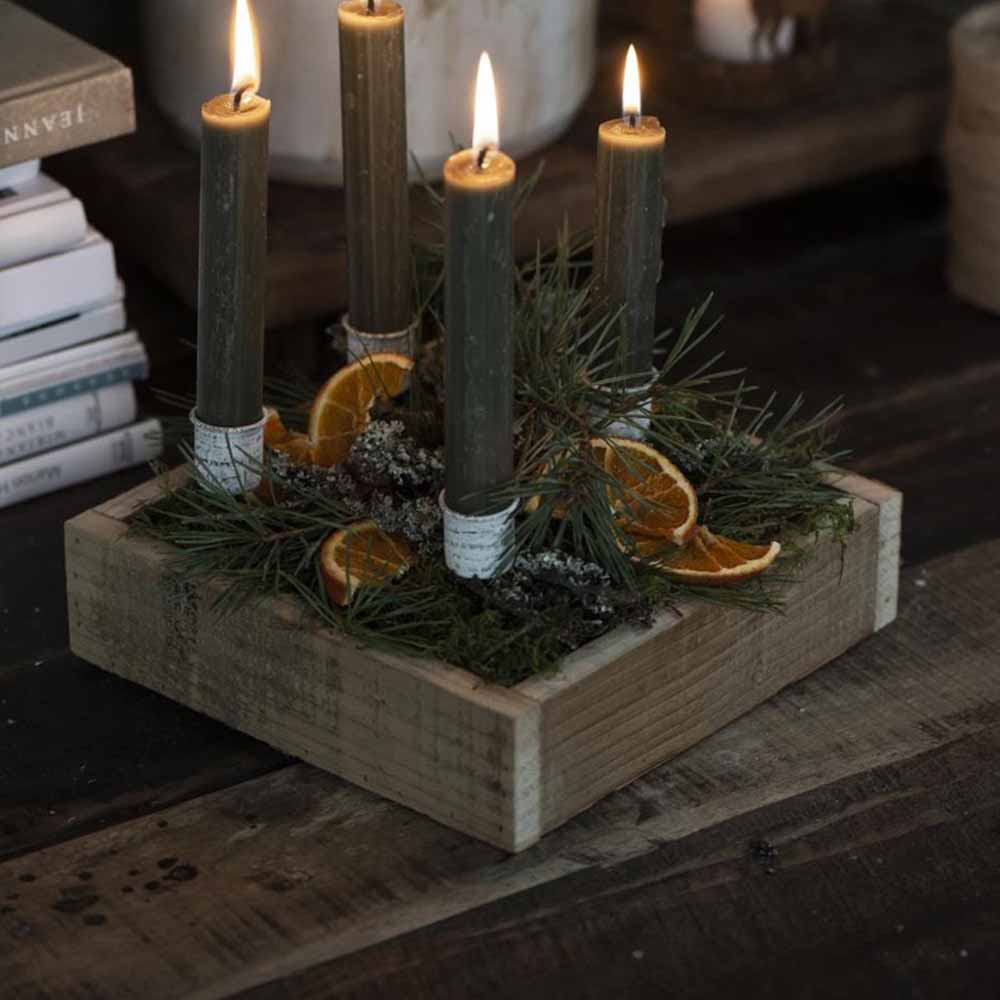 Adventskranz: Eine Möglichkeit ist das Basteln eines Adventskranzes. Dazu benötigst Du vier Kerzen, Tannenzweige, Draht und Dekomaterial wie Schleifen, Kugeln oder Zapfen. Du bindest die Tannenzweige kreisförmig zusammen und arrangierst die Kerzen darauf. Danach kannst Du alles mit Deinem Dekomaterial aufhübschen.