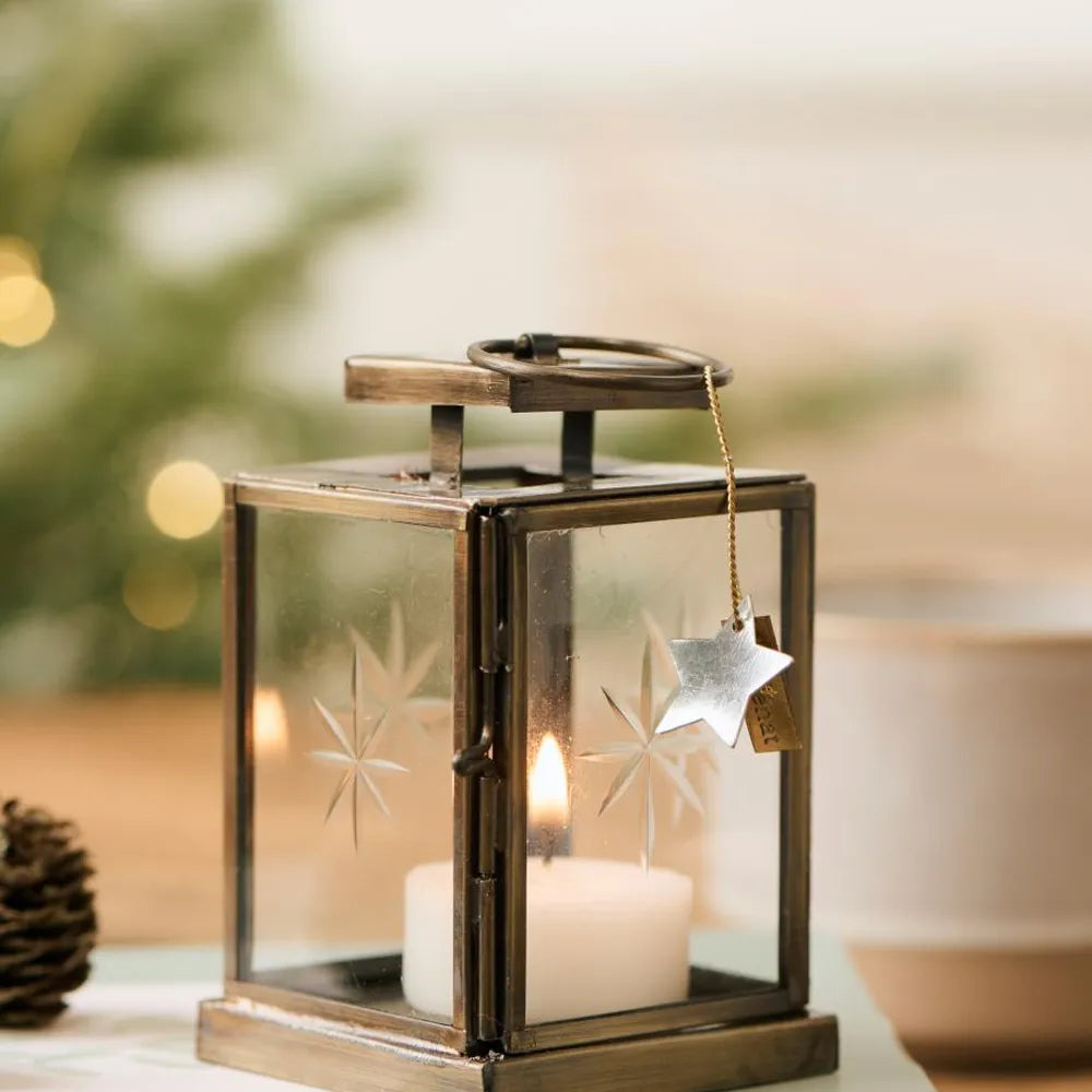 Eine Laterne oder ein Teelichthalter kann die ideale Beleuchtung für ein winterliches Ambiente bieten. Kombiniert mit Stumpenkerzen schaffen sie eine warme und einladende Atmosphäre, die das Weihnachtsfest noch besonderer macht.