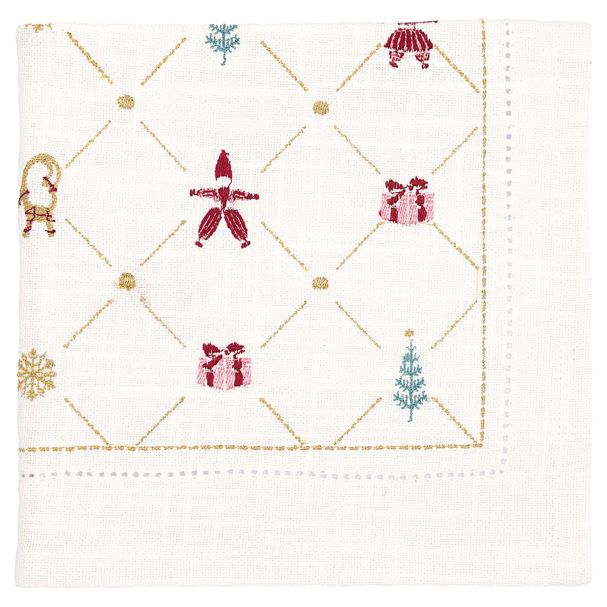 Diese festliche Stoffserviette von GreenGate verzaubert Deinen Tisch im Nu in ein winterliches Wunderland. Mit ihren liebevollen Stickereien bringt sie Weihnachtsfreude direkt auf den Teller – ideal für gemütliche Familienessen oder fröhliche Feiern mit Freunden!