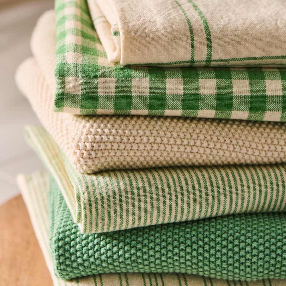 Das Geschirrtuch "Emil" von Ib Laursen bringt schlichte Eleganz in deine Küche! Mit seinen zarten grünen Streifenund der hochwertigen Baumwollqualität vereint es Funktionalität mit dekorativem Charme. Es ist ein echter Blickfang – besonders für Fans des skandinavischen Stils.