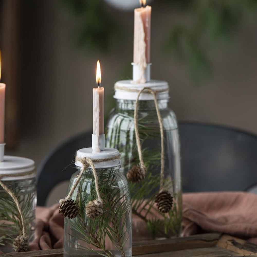 Das Glasgefäß ist 17,5 cm hoch und misst 8,5 cm im Durchmesser, sodass auch schmale Kerzen mit rund 1,3 cm Ø perfekt hinein passen【654150157319035†screenshot】. Die zylindrische Form sorgt für Stabilität, der abnehmbare Deckel aus weiß lackiertem Metall wirkt dezent und ist doch ein Blickfang. Dank der durchsichtigen Wand kannst du den Halter nach Lust und Laune dekorieren – mit getrockneten Beeren, duftenden Gewürzen oder kleinen Zapfen. Die skandinavische Marke Ib Laursen steht für liebevoll ausgewählte Wohnaccessoires, und dieser Halter ist ein echtes Herzstück.