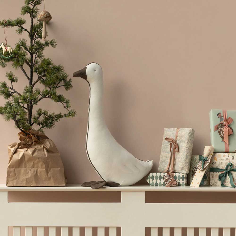Diese weihnachtliche Maileg-Gans ist ein stilvolles Highlight für Dein Zuhause. Mit ihrem minimalistischen Design, dem weichen Baumwollstoff und einer eleganten Silhouette bringt sie skandinavische Gemütlichkeit direkt in Dein Wohnzimmer.